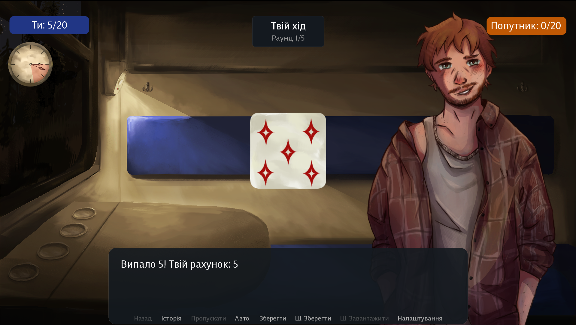 Спекотна літня ніч, телефон сідає, майже 20 годин у потязі... Із тобою починає розмову твій попутник і пропонує пограти у гру — може вона зможе розвіяти твою нудьгу?